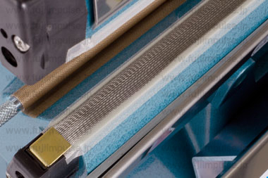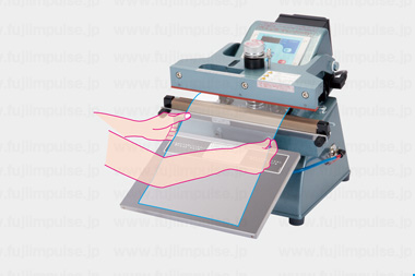 In addition to a single heater type capable of sealing materials up to 0.3 mm thick (total thickness of overlapping sheets), there is a double-side heating type type capable of sealing thick, laminated and gusset bags up to 0.4 mm thick (total thickness of overlapping sheets).