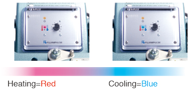 4. The heat/cool lamp lights in blue after finishing heating. While the blue light is on, keep on depressing the pedal.
