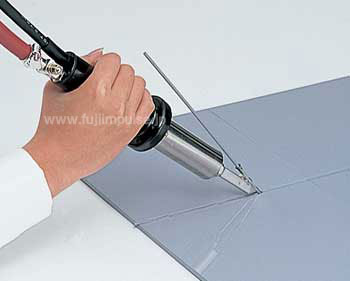 The rod-shaped RL Gun is good for the box interior welding work (doing corners or duct lining), or any work that requires you work in narrow places without much space to move your hands.