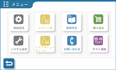 It supports kanji and hiragana, image display, ten-key numeric input, and allows users to check consumable parts information as well as error causes and troubleshooting guidance.