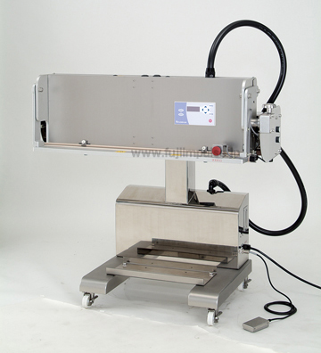 The height of the head of the sealer can be adjusted to suit the package content by operating the buttons on the side of the machine.