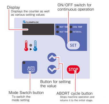 To secure cooling temperature, the control unit is designed so that the cooling temperature cannot be set at a temperature higher than the heating temperature. If the cooling temperature is too close to the heating temperature, the product life of parts such as heating element, Teflon sheet will be shorter because of inadequate cooling process.