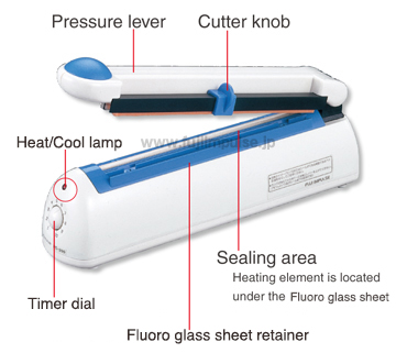 As it is an impulse sealer, it is ready to use just by plugging in to the wall outlet. Pre-heating is not required. All you need to do is to adjust the heat time with the timer depending on the thickness of the films.