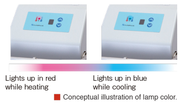 The heat/cool lamp lights up in red during heating and in blue during cooling, allowing you to visually check the "cooling time".